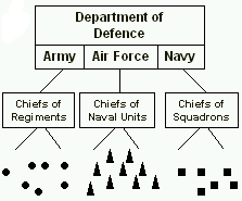 Hierarchical organisation can be classified into three levels of decision-making: strategic, operational and tactical. This hierarchical arrangement is a common practise in military